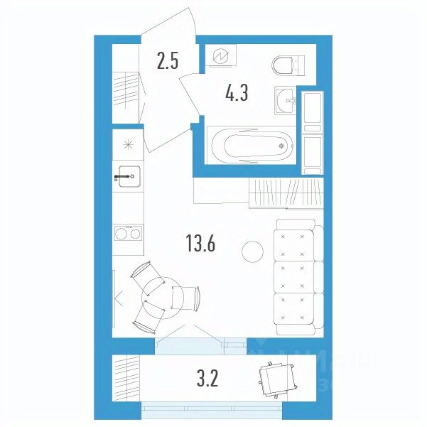 Студия от 18,7 м²
