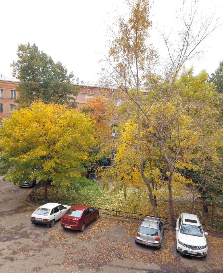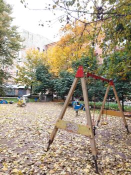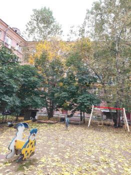 Все окна выходят в просторный зелёный двор с детской площадкой, закрытый от посторонних машин. Достаточно мест для парковки.