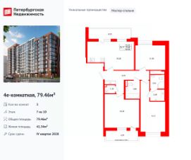 Уникальная, функциональная европланировка, большая кухня-гостиная 18.05 м², вместительная прихожая 8.7 м². Общая площадь квартиры - 79.46 м², жилая 41.54 м², высота потолка 2.77 м.