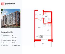 Продается уютная студия от застройщика в жилом комплексе "Титул в Московском" в престижном Московском районе.