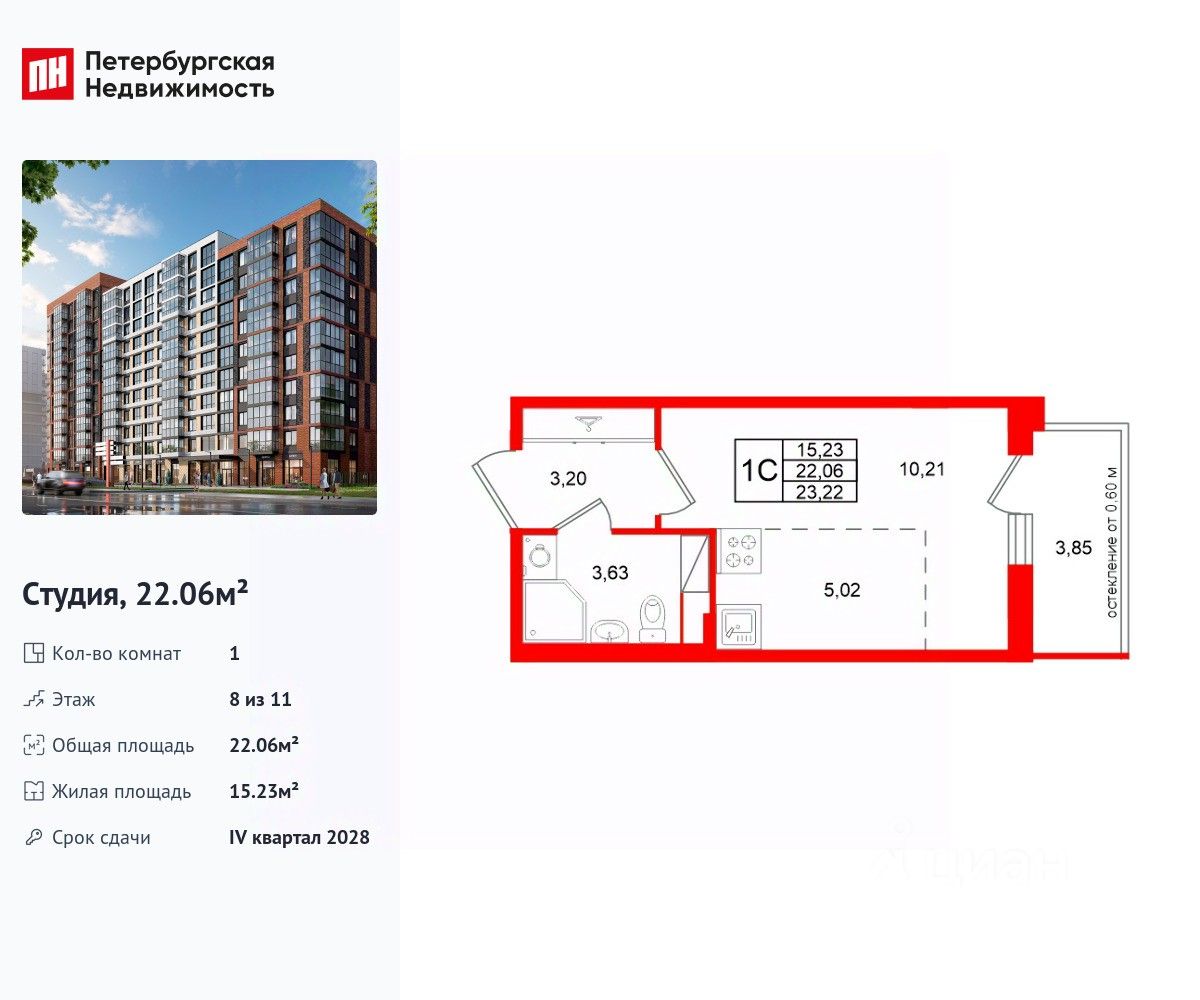 Удобная, классическая, функциональная европланировка, вместительная прихожая 3.2 м². Общая площадь студии - 22.06 м², жилая 15.23 м², высота потолка 2.77 м.
