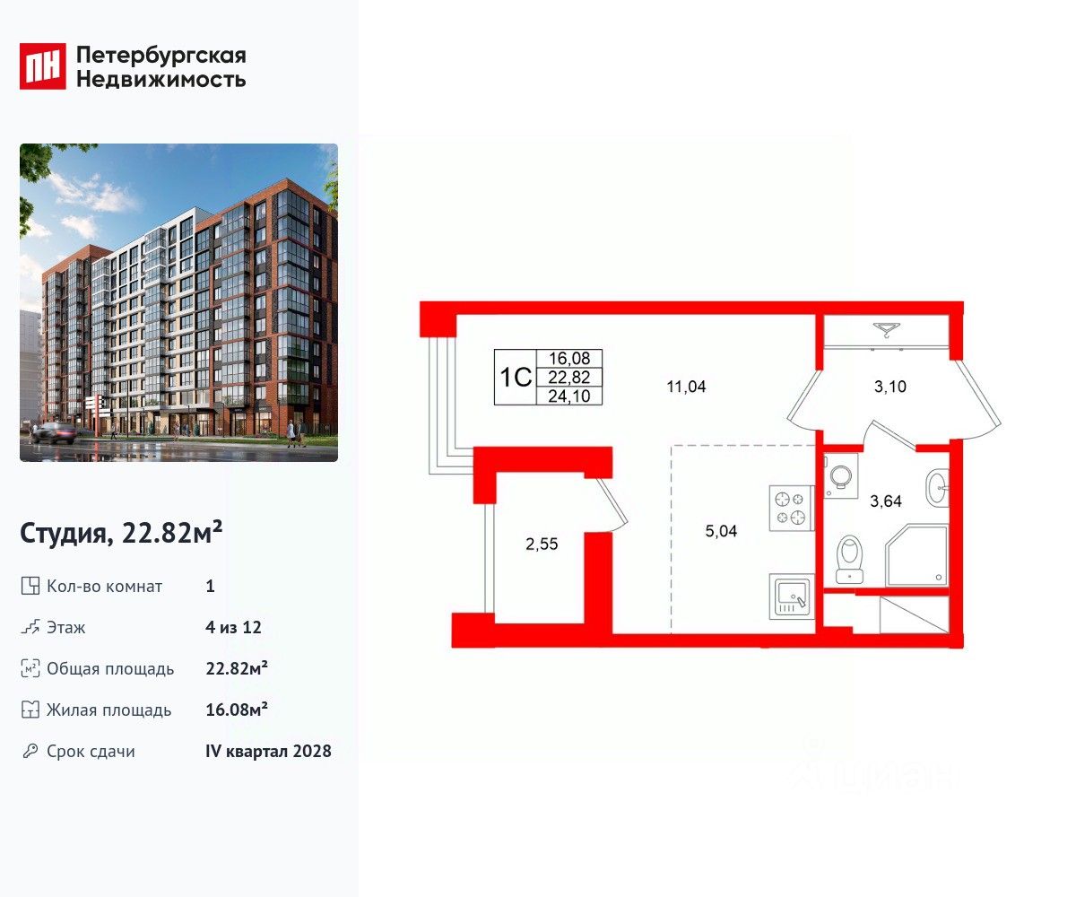 Продается уютная студия от застройщика в жилом комплексе "Титул в Московском" в престижном Московском районе. До метро можно добраться пешком всего за 25 минут. Удобная, классическая, функциональная европланировка, вместительная прихожая 3.1 м². Общая площадь студии - 22.82 м², жилая 16.08 м², высота потолка 2.77 м. Квартира продается с отделкой "NORD LINE SILVER ВК NEW". Что особенного в ЖК "Титул в Московском"? • Престижный Московский район • Авторская архитектурная концепция • 2 центральные входные группы с ресепшн и лаундж-зонами • Кленовая аллея с арт-стеллой, цветочная аллея и сад трав • Уютные дворы-патио, площадки SetlKids и SetlSport • Инновационный Лицей Setl с оригинальной архитектурной концепцией и уникальной образовательной средой