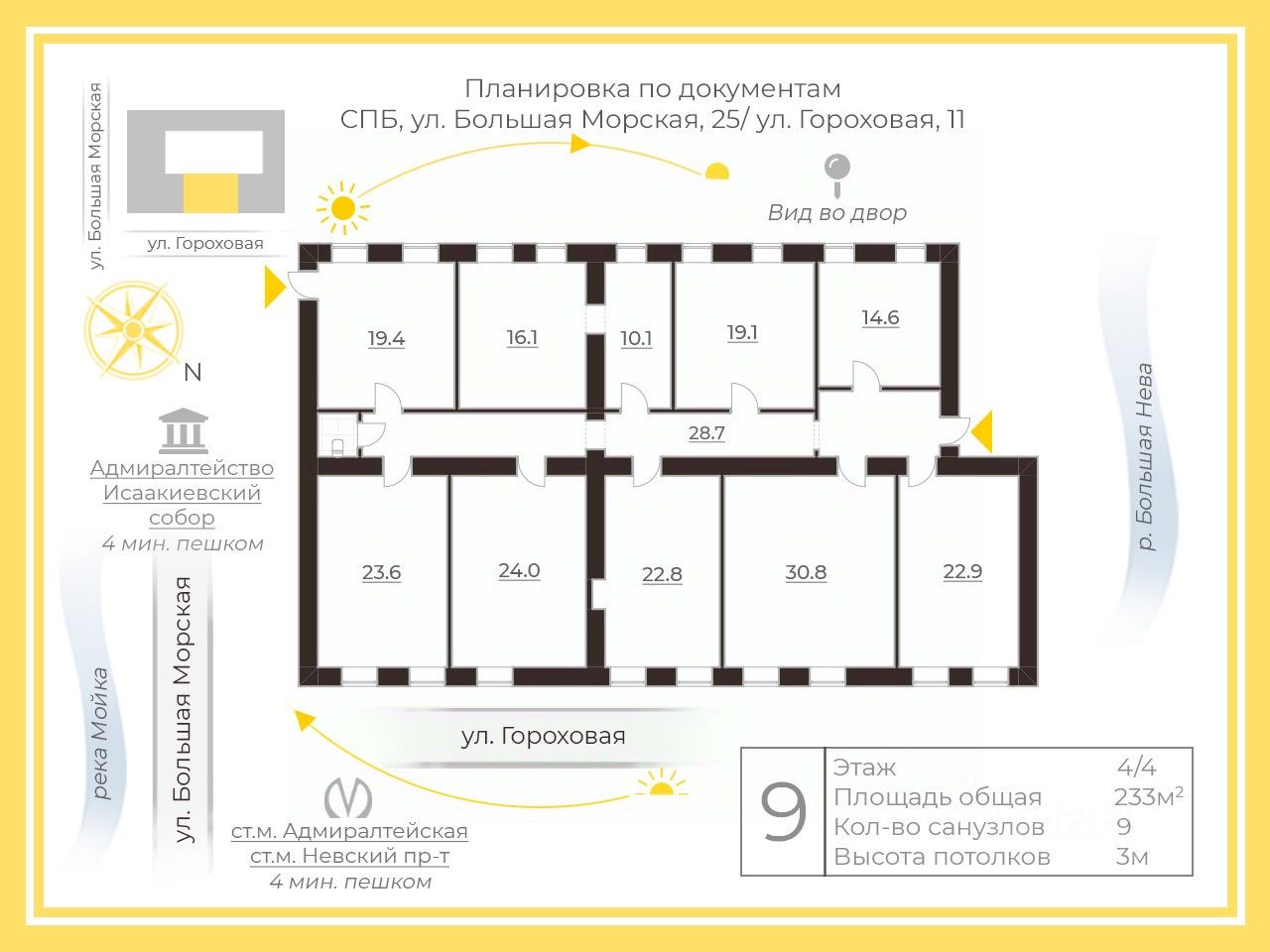 Квартира в бывшем доходном В.В. Лерхе расположена в самом сердце Петербурга вблизи Исаакиевской площади, Невского проспекта, Эрмитажа, реки Мойки, Адмиралтейства