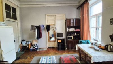 Комната: 19, 9 м² (доля в праве собственности), изолированная, прямо напротив кухни 22.1 м2, в семикомнатной квартире, на 3-м этаже четырёх этажного дома.