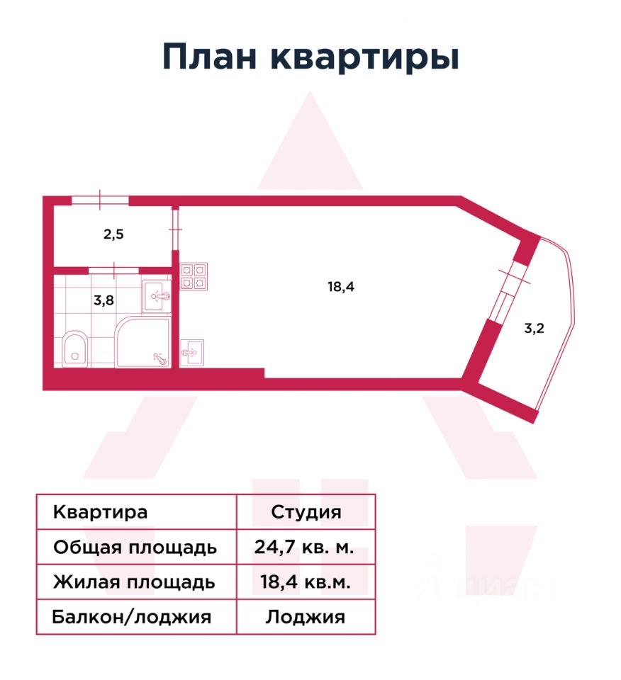 • Санузел совмещённый, площадь 3,8 м², можно установить полноценную ванну и стиральную машину