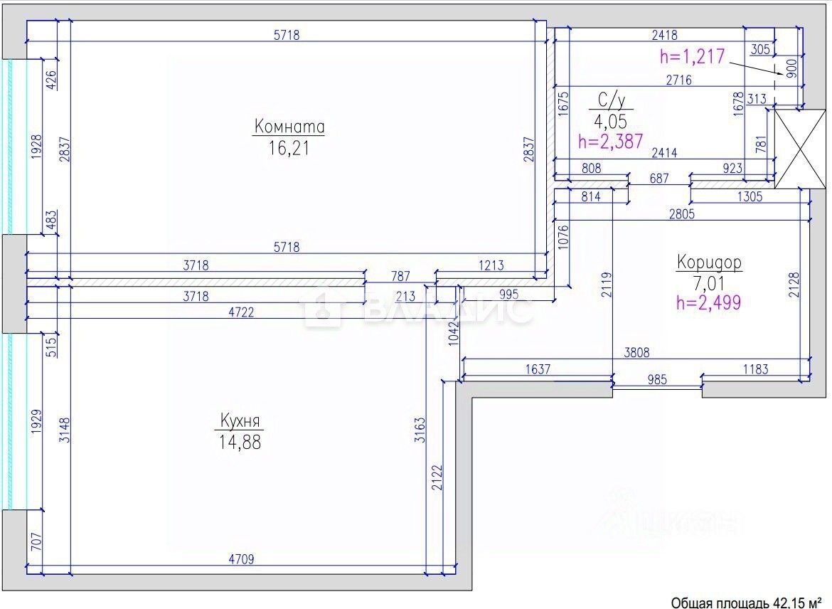 Квартира площадью 42,15 кв. м расположена на 7-м этаже 12-этажного монолитного дома, построенного в 2023 году. Жилая площадь составляет 16,2 кв. м, а кухня — 14,8 кв. м. Евроремонт, просторные комнаты и совмещённый санузел создают комфортные условия для проживания.