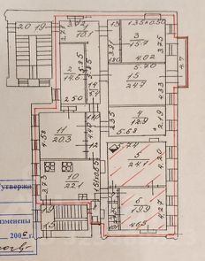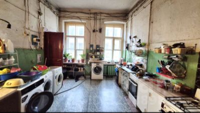 Комната: 24.1 м² (доля в праве собственности), изолированная, прямо напротив кухни 22.1 м2, в семикомнатной квартире, на 3-м этаже четырёх этажного дома.