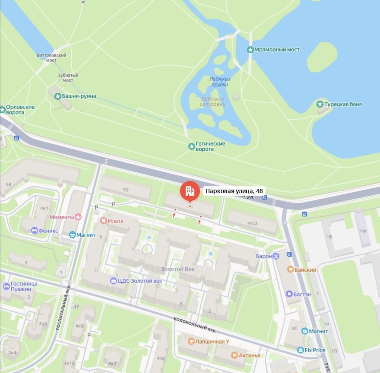 Адрес: Российская Федерация, г.Санкт-Петербург, г. Пушкин, ул. Парковая, д.48, литера А