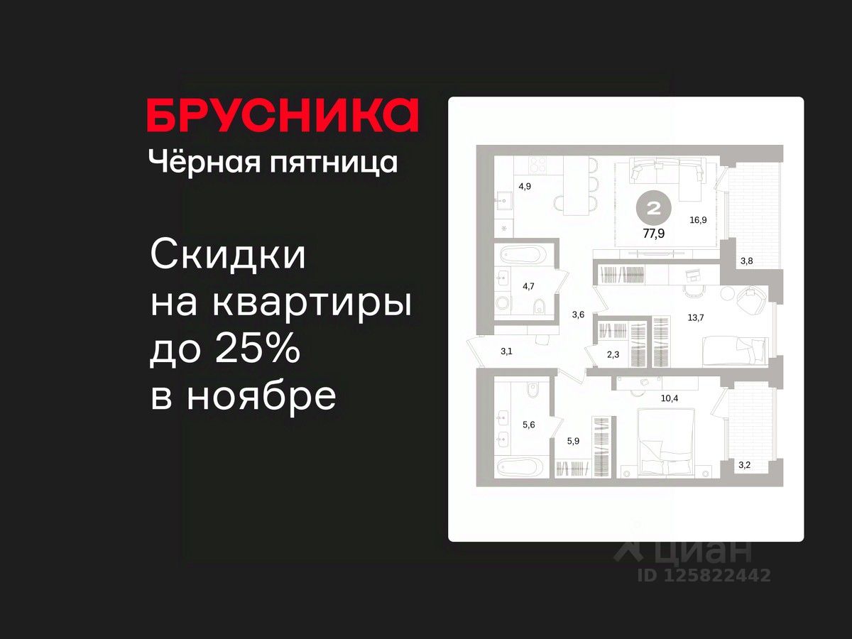 Двухкомнатная квартира с предчистовой отделкой в ЖК "Северный ветер" на 12 этаже. Общая площадь: 77.93 кв.м., жилая: 24.1 кв.м., площадь просторной кухни-столовой: 21.8 кв.м. Комнаты изолированные, все окна выходят на одну сторону. В квартире две лоджии, два совмещенных санузла. Высота потолков 3.1 м.
