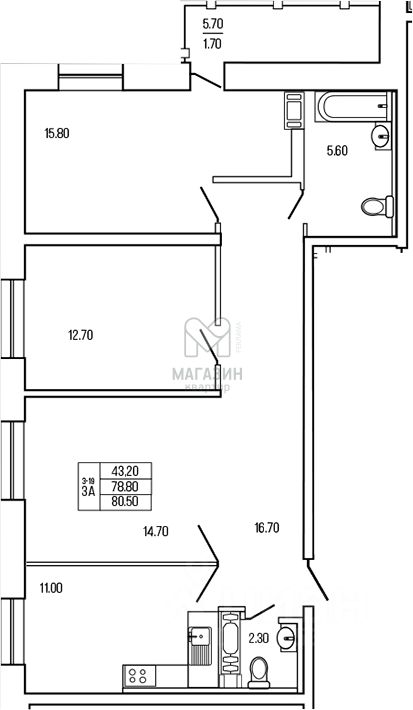 Просторные комнаты (15.8 м², 12.7 м² и 14.7 м²) с увеличенными окнами обеспечивают достаточное количество света и уют.