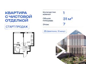 Продается однокомнатная квартира в жилом комплексе "Высота. Новодевяткино" от ГК СТОУН нa 7 этаже. Общaя площадь cоcтaвляeт 31.02 кв. м.