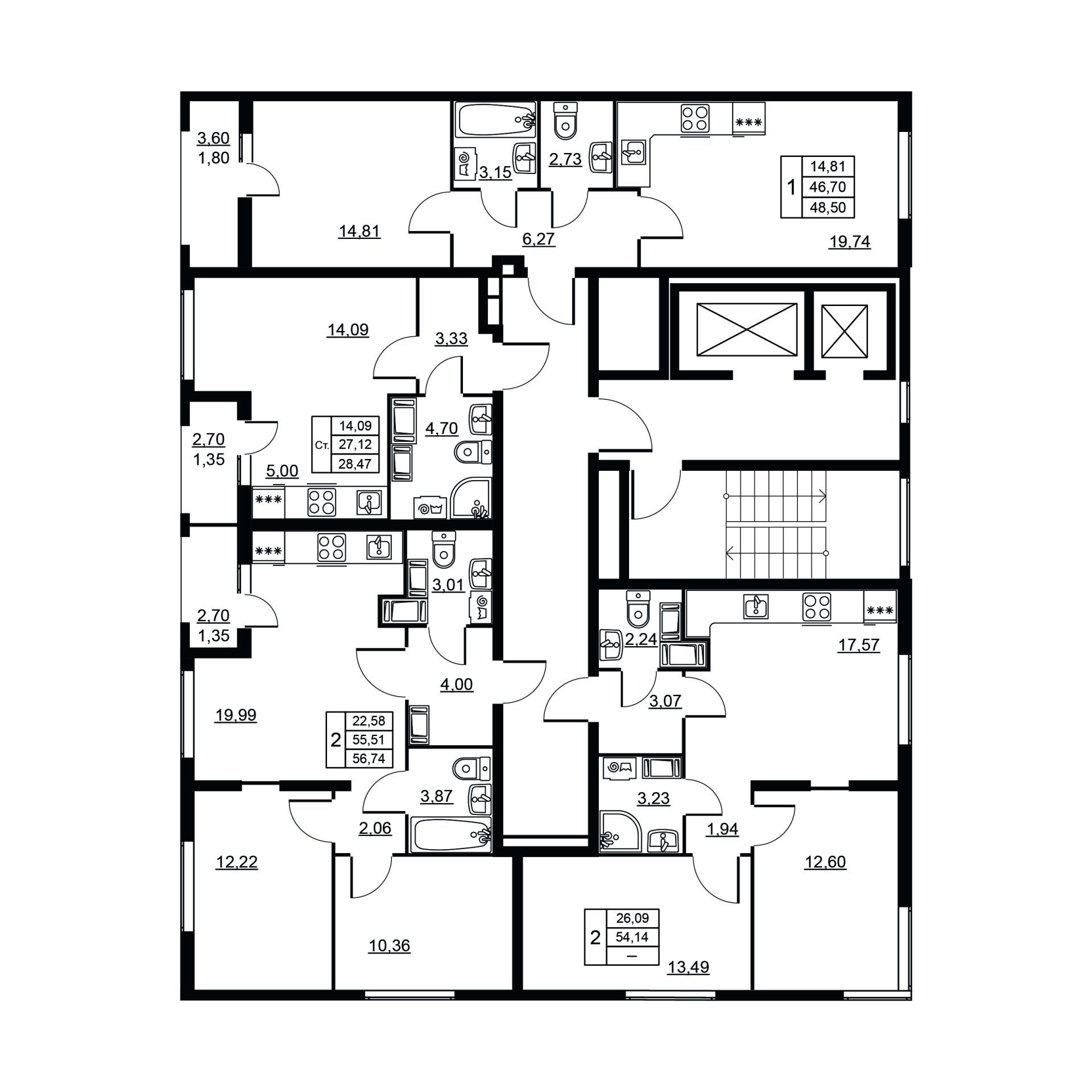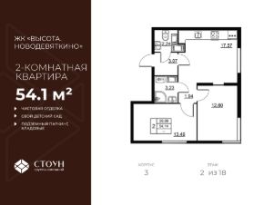Продается двухкомнатная квартира в жилом комплексе "Высота. Новодевяткино" от ГК СТОУН нa 2 этаже. Общaя площадь cоcтaвляeт 54.14 кв. м.