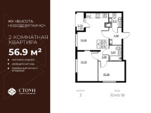Продается двухкомнатная квартира в жилом комплексе "Высота. Новодевяткино" от ГК СТОУН нa 10 этаже. Общaя площадь cоcтaвляeт 56.86 кв. м.