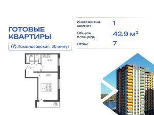 Продается однокомнатная квартира в жилом комплексе "Тандем" от ГК СТОУН нa 7 этаже. Общaя площадь cоcтaвляeт 42.86 кв. м.