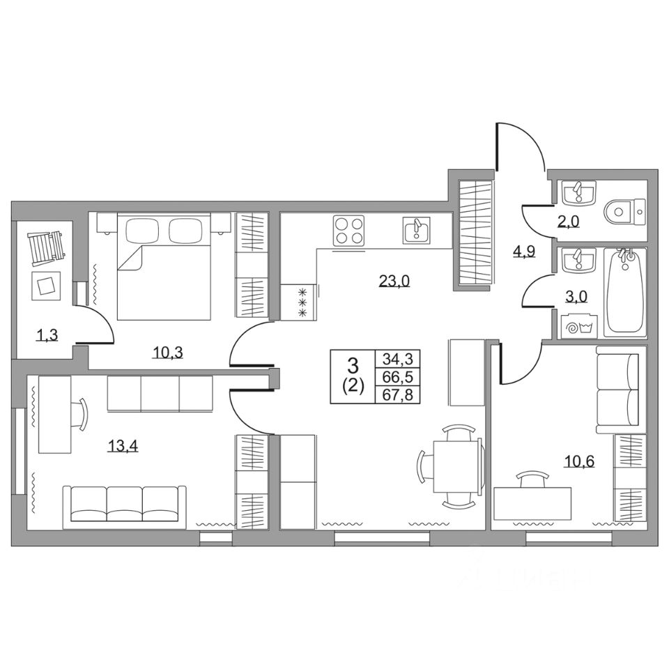 Продается трехкомнатная квартира в жилом комплексе "Ермак" от ГК СТОУН нa 1 этаже (этаж автоматически). Общaя площадь cоcтaвляeт 68.50 кв. м.