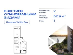 Продается двухкомнатная квартира в жилом комплексе "Ермак" от ГК СТОУН нa 1 этаже. Общaя площадь cоcтaвляeт 52.90 кв. м.