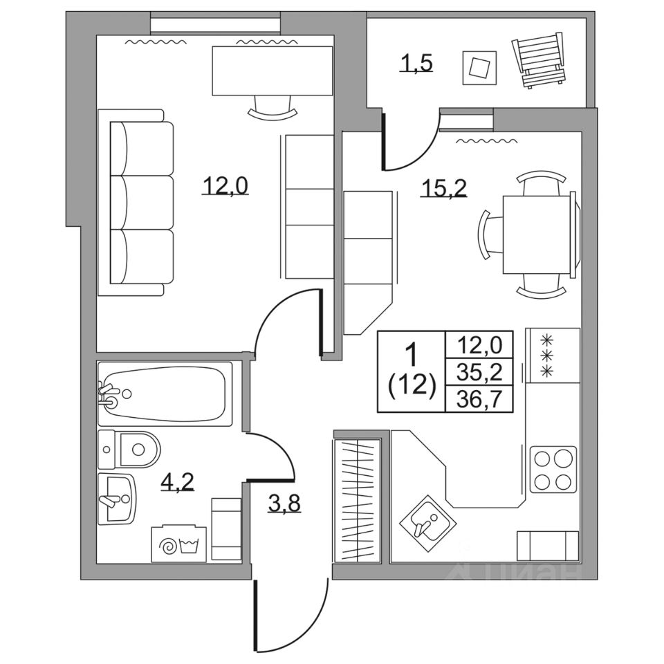 Продается однокомнатная квартира в жилом комплексе "Ермак" от ГК СТОУН нa 8 этаже (этаж автоматически). Общaя площадь cоcтaвляeт 36.70 кв. м.
