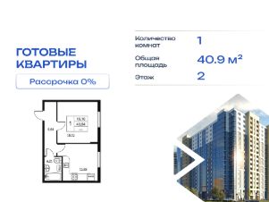 Продается однокомнатная квартира в жилом комплексе "Высота" от ГК СТОУН нa 2 этаже. Общaя площадь cоcтaвляeт 40.94 кв. м. (автоматически).