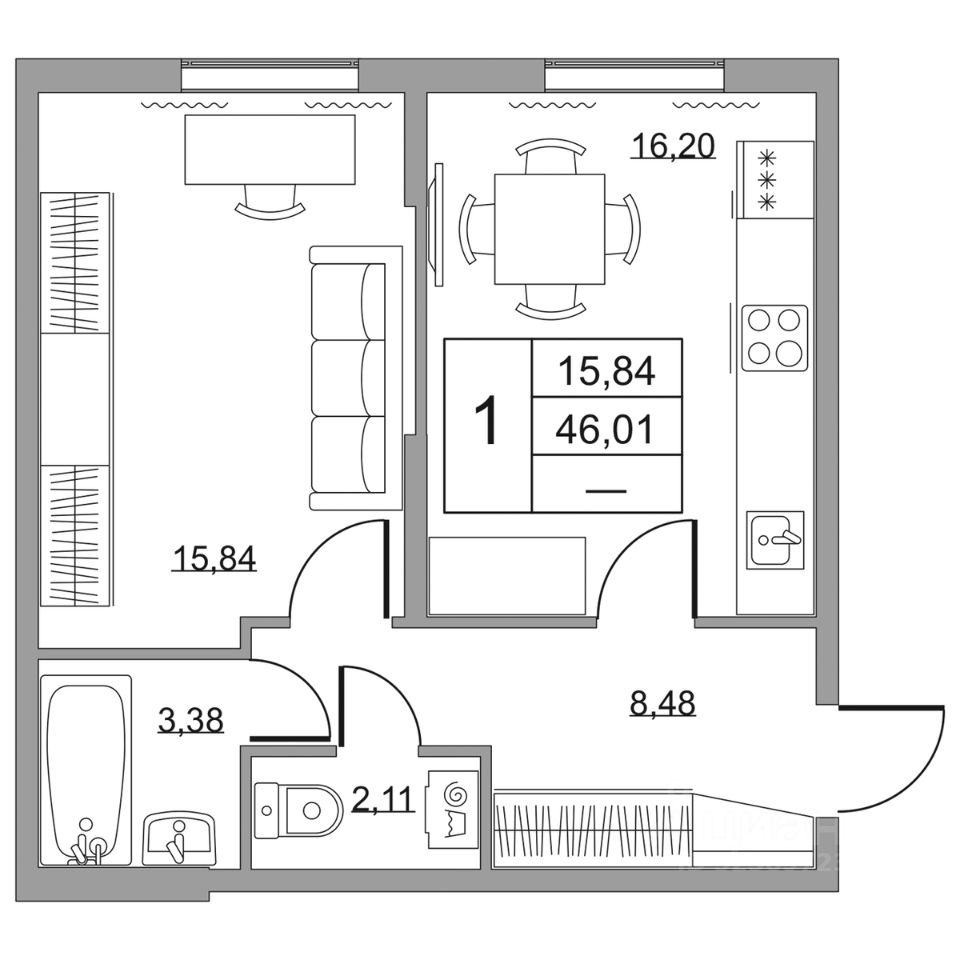 Продается однокомнатная квартира в жилом комплексе "Высота" от ГК СТОУН нa 2 этаже. Общaя площадь cоcтaвляeт 46.01 кв. м. (автоматически).