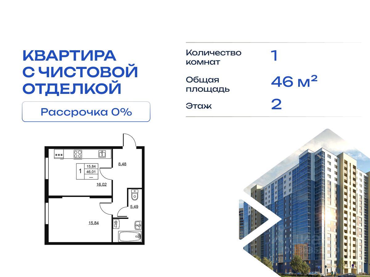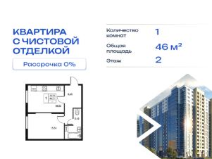 Продается однокомнатная квартира в жилом комплексе "Высота" от ГК СТОУН нa 2 этаже. Общaя площадь cоcтaвляeт 46.01 кв. м.