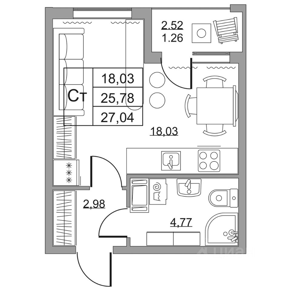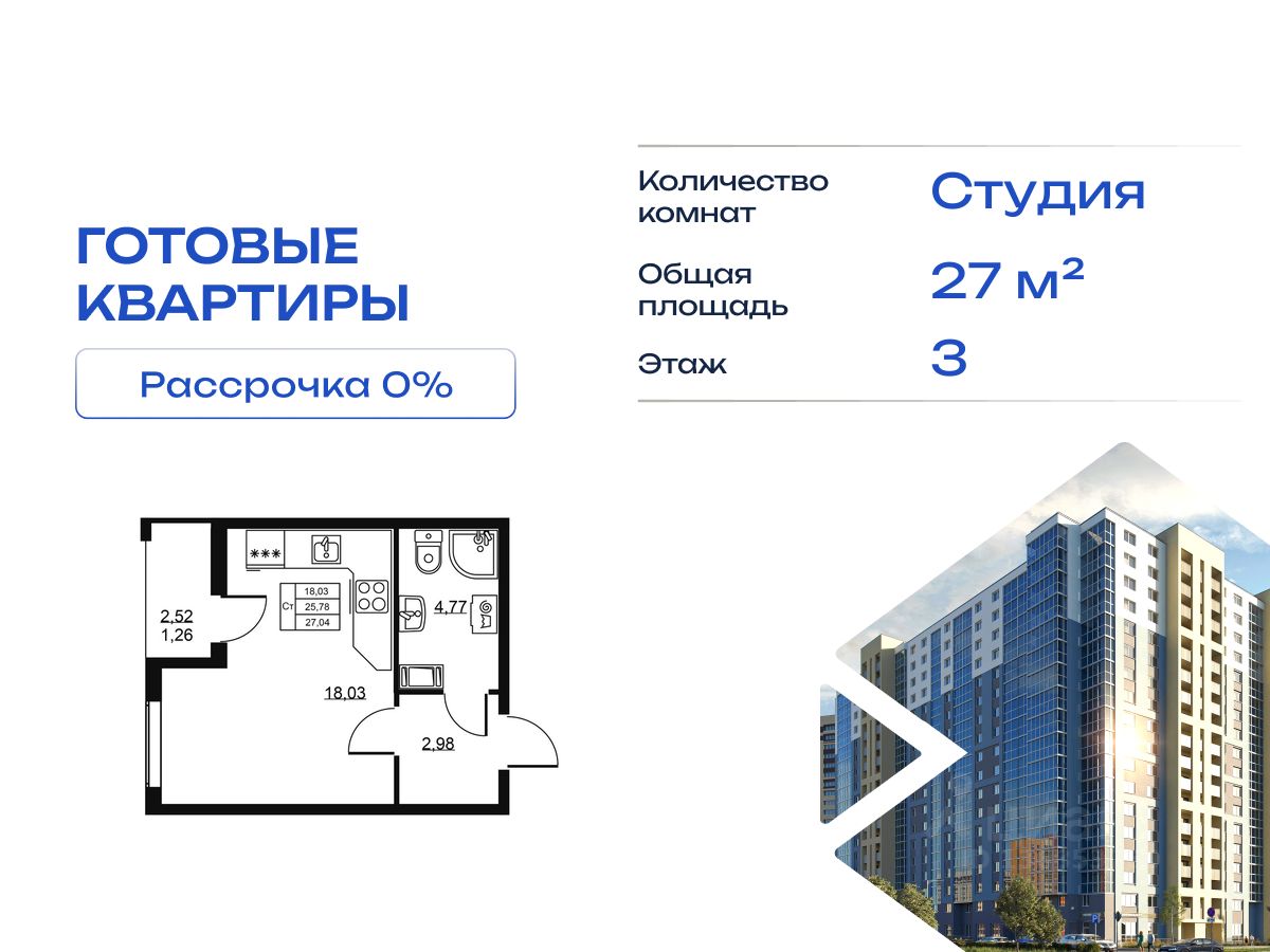 Продается квартира студия в жилом комплексе "Высота" от ГК СТОУН нa 3 этаже. Общaя площадь cоcтaвляeт 27.04 кв. м. (автоматически).
