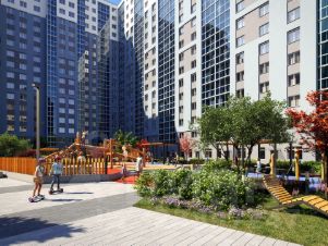 Для маленьких жителей предусмотрены игровые площадки, для взрослых - уютные зоны отдыха. На территории будут высажены деревья и пышные кустарники. Удобство добавляют велопарковки, расположенные у парадных и во дворе, а также отдельные входы на автостоянки.