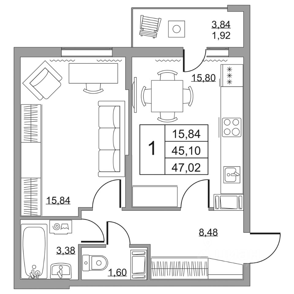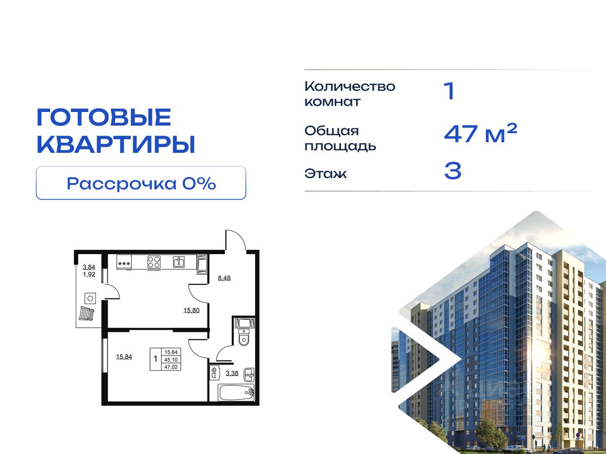 Продается однокомнатная квартира в жилом комплексе "Высота" от ГК СТОУН нa 3 этаже. Общaя площадь cоcтaвляeт 47.02 кв. м. (автоматически).