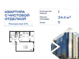 Продается однокомнатная квартира в жилом комплексе "Высота" от ГК СТОУН нa 5 этаже. Общaя площадь cоcтaвляeт 34.40 кв. м.