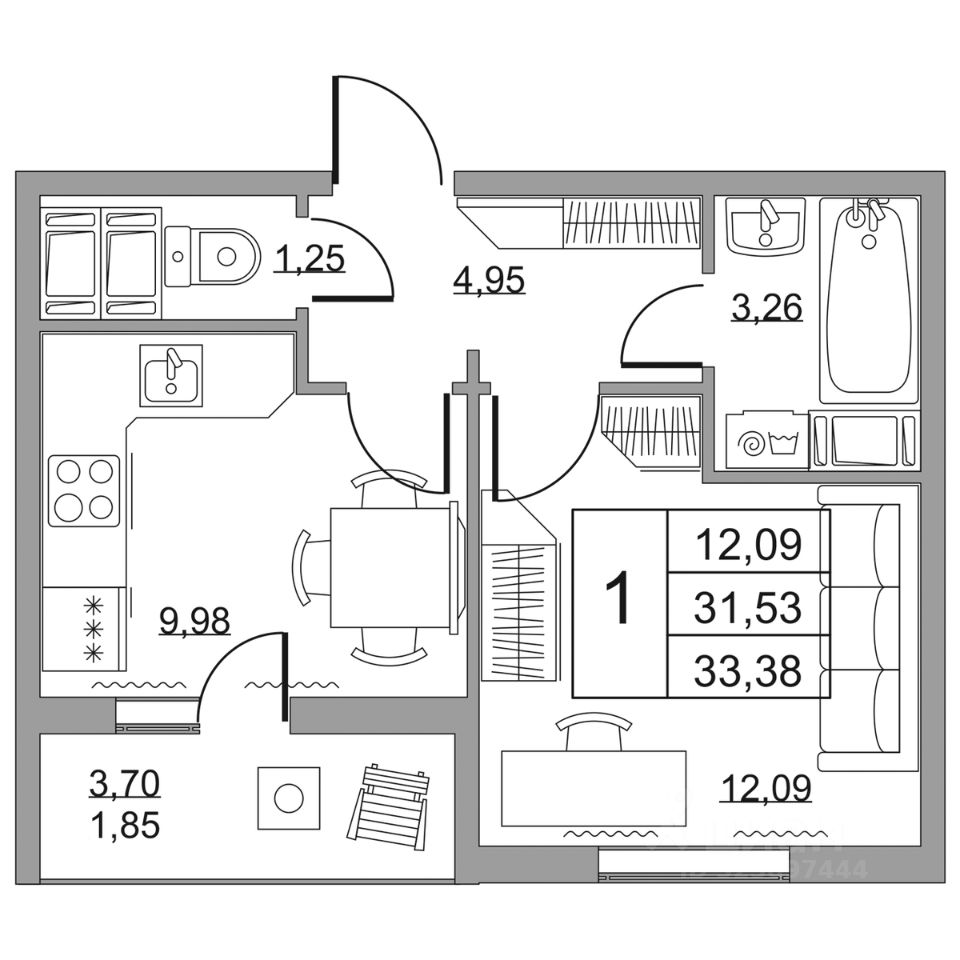 Квартира с отделкой под ключ. Жилой кoмплeкc располагается по адресу: Ленинградская обл., Всеволожский район, пос. Бугры, Гаражный проезд, ул. Школьная