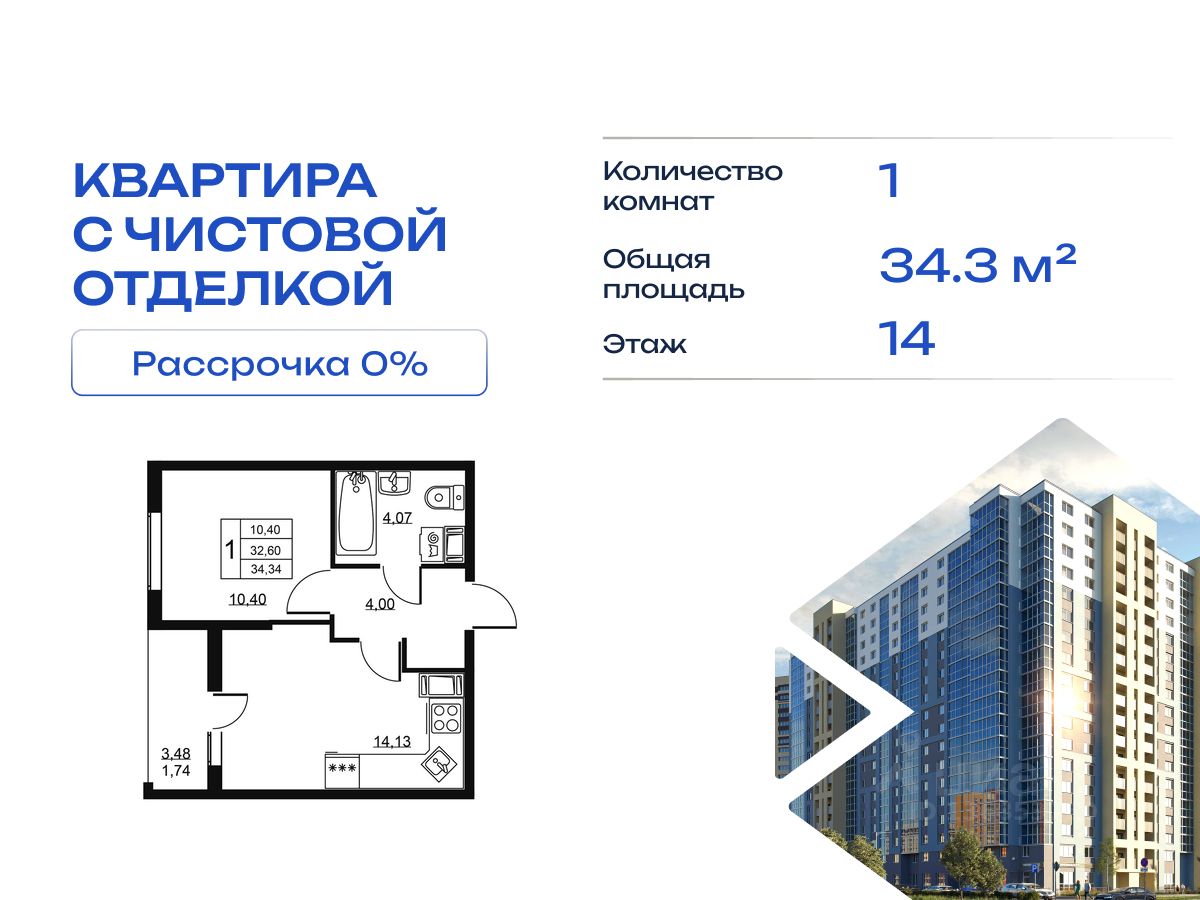Продается однокомнатная квартира в жилом комплексе "Высота" от ГК СТОУН нa 14 этаже. Общaя площадь cоcтaвляeт 34.34 кв. м.