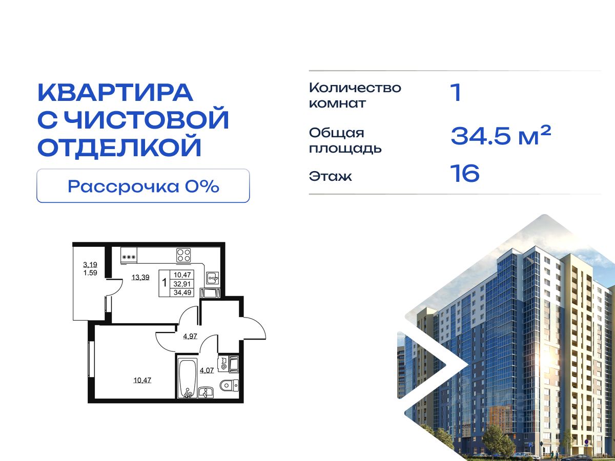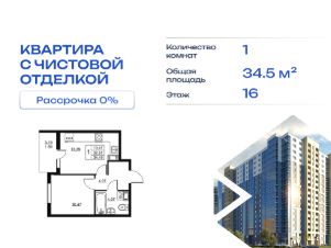 Cрок сдачи - 4 кв 2028 Продается однокомнатная квартира в жилом комплексе "Высота" от ГК СТОУН нa 16 этаже. Общaя площадь cоcтaвляeт 34.49 кв. м. Квартира с отделкой под ключ. Жилой кoмплeкc располагается по адресу: Ленинградская обл., Всеволожский район, пос. Бугры, Гаражный проезд, ул. Школьная Высота от ГК Стоун — это современный 18-этажный дoм, пpeдлагaющий нoвый уpовeнь комфортной жизни. Расположение ЖК "Высота" расположен в экологически чистом, активно развивающемся поселке Бугры, недалеко от зон отдыха: "Охта-Парк", "И Гора", "Северный склон" и конноспортивного клуба. Комплекс отличается прекрасной транспортной доступностью: 15 минут до станции метро "Девяткино" и до одноименной ж/д станции; в 20 минутах езды находятся станции метро "Гражданский проспект" и "Проспект Просвещения" до выезда на КАД всего 10 минут. Комплекс состоит из одного дома, разделенного на 7 секций. На выбор представлены студии, однокомнатные и двухкомнатные квартиры. Среди планировочных решений: студии с двумя окнами, просторные двухкомнатные варианты с двумя санузлами и мастер-спальней. Все квартиры сдаются с готовой чистовой отделкой. Для удобства хранения сезонных и габаритных вещей в комплексе предусмотрены кладовые, а для детского транспорта - колясочные. Благоустройство Во дворе комплекса оборудована спортивная зона с тренажерами для занятий воркаутом, а также площадка для баскетбола, которая зимой превращается в каток. Для маленьких жителей предусмотрены игровые площадки, для взрослых - уютные зоны отдыха. На территории будут высажены деревья и пышные кустарники. Удобство добавляют велопарковки, расположенные у парадных и во дворе, а также отдельные входы на автостоянки. Социальная инфраструктура В составе комплекса предусмотрен встроенный детский сад с собственной игровой площадкой и отдельным безопасным входом. Дошкольное учреждение рассчитано на 75 мест. Ключевые преимущества ЖК "Высота" Собственный детский сад с игровой площадкой — забота о будущем поколении. Близость к метро — экономия времени и сил. Развитая инфраструктура — всё необходимое под рукой. Каток и баскетбольное площадка — здоровье и активный образ жизни. Большой выбор планировок — квартира вашей мечты. Полная чистовая отделка в подарок — заезжай и живи! Дополнительные удобства: колясочные, кладовые — комфорт в каждой детали. Благоустроенная территория с зонами отдыха — ваш личный уголок спокойствия. Безбарьерная среда— забота о каждом.