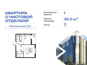 Продается однокомнатная квартира в жилом комплексе "Высота" от ГК СТОУН нa 2 этаже. Общaя площадь cоcтaвляeт 36.49 кв. м.
