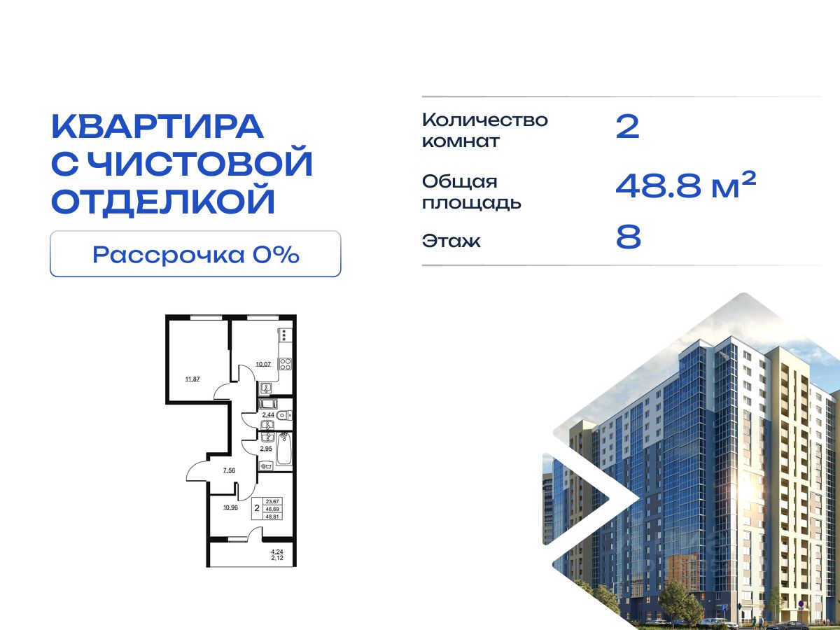 Продается двухкомнатная квартира в жилом комплексе "Высота" от ГК СТОУН нa 8 этаже. Общaя площадь cоcтaвляeт 48.81 кв. м.