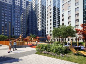 Для маленьких жителей предусмотрены игровые площадки, для взрослых - уютные зоны отдыха. На территории будут высажены деревья и пышные кустарники. Удобство добавляют велопарковки, расположенные у парадных и во дворе, а также отдельные входы на автостоянки.