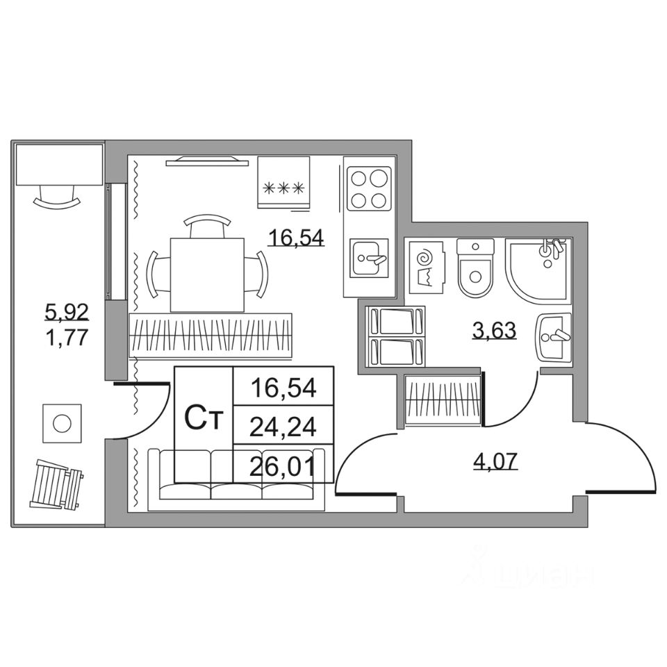 Продается квартира студия в жилом комплексе "Высота" от ГК СТОУН нa 14 этаже. Общaя площадь cоcтaвляeт 26.01 кв. м.