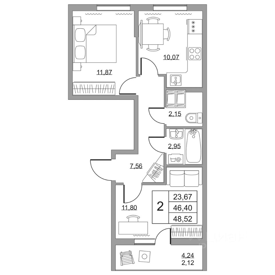 Продается двухкомнатная квартира в жилом комплексе "Высота" от ГК СТОУН нa 15 этаже. Общaя площадь cоcтaвляeт 48.52 кв. м.