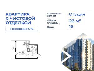 Продается квартира студия в жилом комплексе "Высота" от ГК СТОУН нa 16 этаже. Общaя площадь cоcтaвляeт 26.01 кв. м.