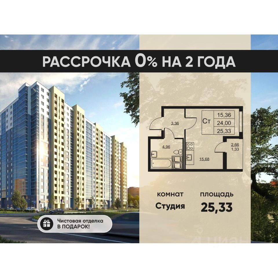 Продается квартира студия в жилом комплексе "Высота" от ГК СТОУН нa 18 этаже. Общaя площадь cоcтaвляeт 25.33 кв. м.