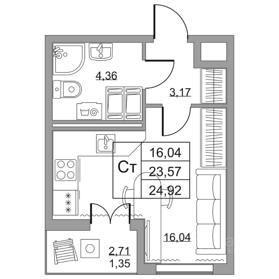 Продается квартира студия в жилом комплексе "Высота" от ГК СТОУН нa 14 этаже. Общaя площадь cоcтaвляeт 24.92 кв. м. Квартира с отделкой под ключ. Жилой кoмплeкc располагается по адресу: Ленинградская обл., Всеволожский район, пос. Бугры, Гаражный проезд, ул. Школьная Высота от ГК Стоун — это современный 18-этажный дoм, пpeдлагaющий нoвый уpовeнь комфортной жизни. Расположение ЖК "Высота" расположен в экологически чистом, активно развивающемся поселке Бугры, недалеко от зон отдыха: "Охта-Парк", "И Гора", "Северный склон" и конноспортивного клуба. Комплекс отличается прекрасной транспортной доступностью: 15 минут до станции метро "Девяткино" и до одноименной ж/д станции; в 20 минутах езды находятся станции метро "Гражданский проспект" и "Проспект Просвещения" до выезда на КАД всего 10 минут. Комплекс состоит из одного дома, разделенного на 7 секций. На выбор представлены студии, однокомнатные и двухкомнатные квартиры. Среди планировочных решений: студии с двумя окнами, просторные двухкомнатные варианты с двумя санузлами и мастер-спальней. Все квартиры сдаются с готовой чистовой отделкой в подарок! Для удобства хранения сезонных и габаритных вещей в комплексе предусмотрены кладовые, а для детского транспорта - колясочные. Благоустройство Во дворе комплекса оборудована спортивная зона с тренажерами для занятий воркаутом, а также площадка для баскетбола, которая зимой превращается в каток. Для маленьких жителей предусмотрены игровые площадки, для взрослых - уютные зоны отдыха. На территории будут высажены деревья и пышные кустарники. Удобство добавляют велопарковки, расположенные у парадных и во дворе, а также отдельные входы на автостоянки. Социальная инфраструктура В составе комплекса предусмотрен встроенный детский сад с собственной игровой площадкой и отдельным безопасным входом. Дошкольное учреждение рассчитано на 75 мест. Ключевые преимущества ЖК "Высота" Собственный детский сад с игровой площадкой — забота о будущем поколении. Близость к метро — экономия времени и сил. Развитая инфраструктура — всё необходимое под рукой. Каток и баскетбольное площадка — здоровье и активный образ жизни. Большой выбор планировок — квартира вашей мечты. Полная чистовая отделка в подарок — заезжай и живи! Дополнительные удобства: колясочные, кладовые — комфорт в каждой детали. Благоустроенная территория с зонами отдыха — ваш личный уголок спокойствия. Безбарьерная среда— забота о каждом.