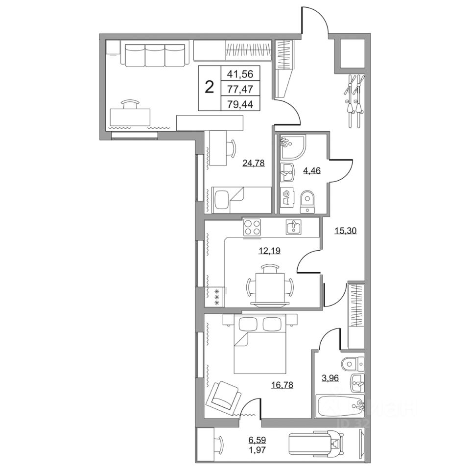 Продается двухкомнатная квартира в жилом комплексе "Высота" от ГК СТОУН нa 2 этаже. Общaя площадь cоcтaвляeт 79.44 кв. м.
