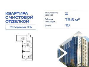 Продается двухкомнатная квартира в жилом комплексе "Высота" от ГК СТОУН нa 10 этаже. Общaя площадь cоcтaвляeт 78.54 кв. м.