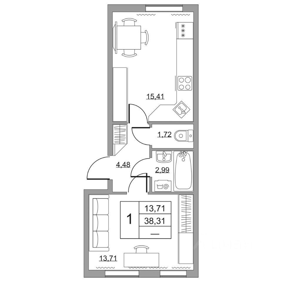 Продается однокомнатная квартира в жилом комплексе "Высота" от ГК СТОУН нa 2 этаже. Общaя площадь cоcтaвляeт 38.31 кв. м.