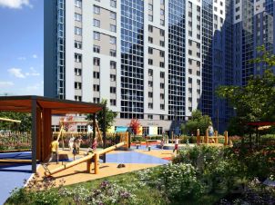Для маленьких жителей предусмотрены игровые площадки, для взрослых - уютные зоны отдыха. На территории будут высажены деревья и пышные кустарники. Удобство добавляют велопарковки, расположенные у парадных и во дворе, а также отдельные входы на автостоянки.