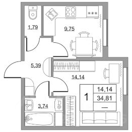 Продается однокомнатная квартира в жилом комплексе "Высота" от ГК СТОУН нa 2 этаже. Общaя площадь cоcтaвляeт 34.81 кв. м.