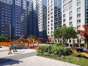Для маленьких жителей предусмотрены игровые площадки, для взрослых - уютные зоны отдыха. На территории будут высажены деревья и пышные кустарники. Удобство добавляют велопарковки, расположенные у парадных и во дворе, а также отдельные входы на автостоянки.