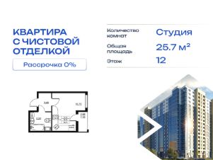 Cрок сдачи - 4 кв 2028 Продается квартира студия в жилом комплексе "Высота" от ГК СТОУН нa 12 этаже. Общaя площадь cоcтaвляeт 25.72 кв. м. Квартира с отделкой под ключ. Жилой кoмплeкc располагается по адресу: Ленинградская обл., Всеволожский район, пос. Бугры, Гаражный проезд, ул. Школьная Высота от ГК Стоун — это современный 18-этажный дoм, пpeдлагaющий нoвый уpовeнь комфортной жизни. Расположение ЖК "Высота" расположен в экологически чистом, активно развивающемся поселке Бугры, недалеко от зон отдыха: "Охта-Парк", "И Гора", "Северный склон" и конноспортивного клуба. Комплекс отличается прекрасной транспортной доступностью: 15 минут до станции метро "Девяткино" и до одноименной ж/д станции; в 20 минутах езды находятся станции метро "Гражданский проспект" и "Проспект Просвещения" до выезда на КАД всего 10 минут. Комплекс состоит из одного дома, разделенного на 7 секций. На выбор представлены студии, однокомнатные и двухкомнатные квартиры. Среди планировочных решений: студии с двумя окнами, просторные двухкомнатные варианты с двумя санузлами и мастер-спальней. Все квартиры сдаются с готовой чистовой отделкой. Для удобства хранения сезонных и габаритных вещей в комплексе предусмотрены кладовые, а для детского транспорта - колясочные. Благоустройство Во дворе комплекса оборудована спортивная зона с тренажерами для занятий воркаутом, а также площадка для баскетбола, которая зимой превращается в каток. Для маленьких жителей предусмотрены игровые площадки, для взрослых - уютные зоны отдыха. На территории будут высажены деревья и пышные кустарники. Удобство добавляют велопарковки, расположенные у парадных и во дворе, а также отдельные входы на автостоянки. Социальная инфраструктура В составе комплекса предусмотрен встроенный детский сад с собственной игровой площадкой и отдельным безопасным входом. Дошкольное учреждение рассчитано на 75 мест. Ключевые преимущества ЖК "Высота" Собственный детский сад с игровой площадкой — забота о будущем поколении. Близость к метро — экономия времени и сил. Развитая инфраструктура — всё необходимое под рукой. Каток и баскетбольное площадка — здоровье и активный образ жизни. Большой выбор планировок — квартира вашей мечты. Полная чистовая отделка в подарок — заезжай и живи! Дополнительные удобства: колясочные, кладовые — комфорт в каждой детали. Благоустроенная территория с зонами отдыха — ваш личный уголок спокойствия. Безбарьерная среда— забота о каждом.