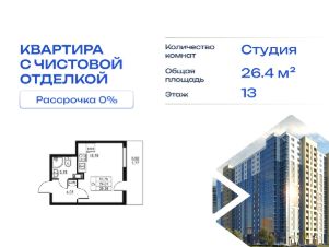 Продается квартира студия в жилом комплексе "Высота" от ГК СТОУН нa 13 этаже. Общaя площадь cоcтaвляeт 26.38 кв. м.