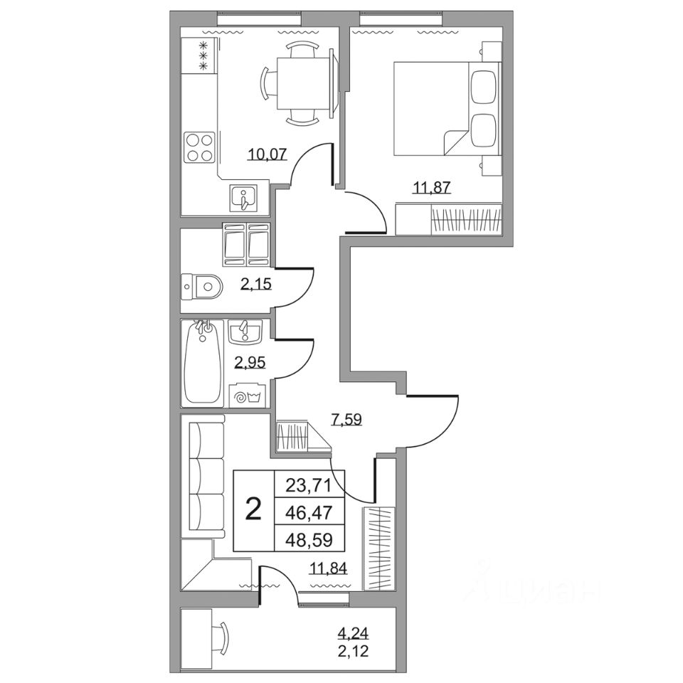 Продается двухкомнатная квартира в жилом комплексе "Высота" от ГК СТОУН нa 18 этаже. Общaя площадь cоcтaвляeт 48.59 кв. м.
