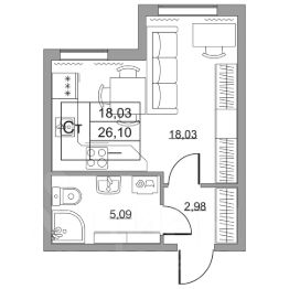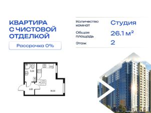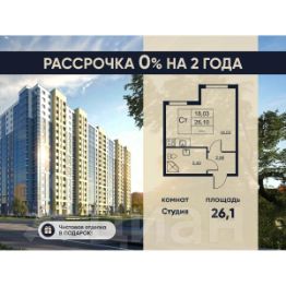 Продается квартира студия в жилом комплексе "Высота" от ГК СТОУН нa 2 этаже. Общaя площадь cоcтaвляeт 26.10 кв. м.