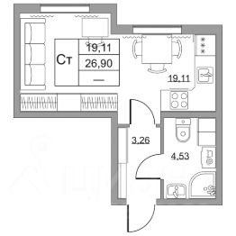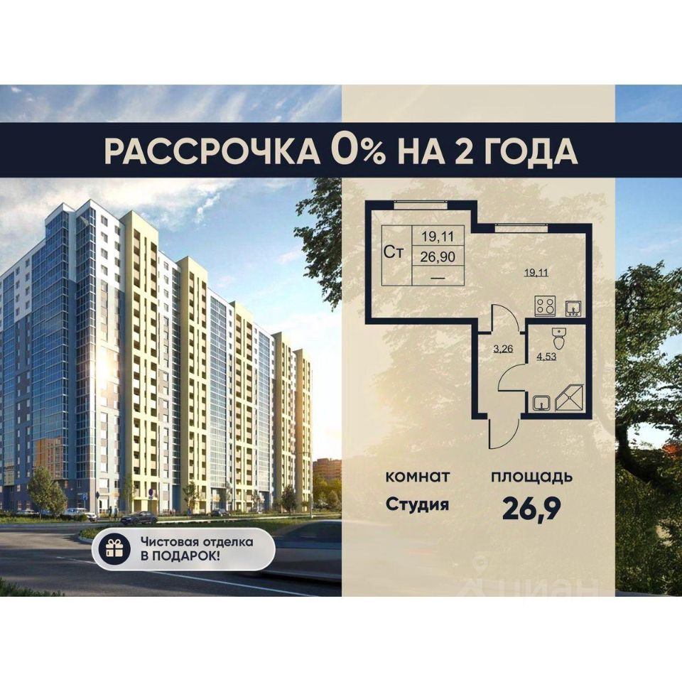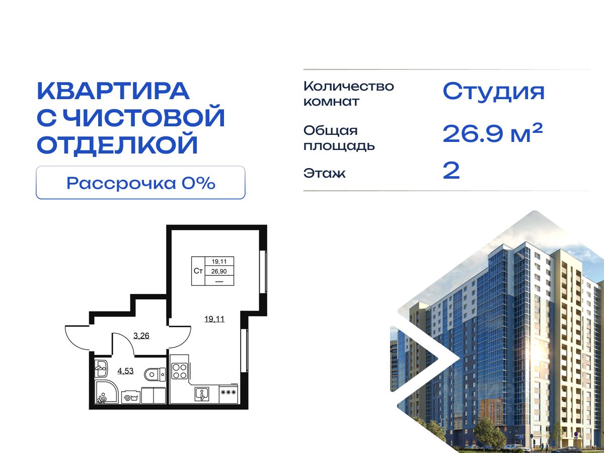 Продается квартира студия в жилом комплексе "Высота" от ГК СТОУН нa 2 этаже. Общaя площадь cоcтaвляeт 26.90 кв. м.